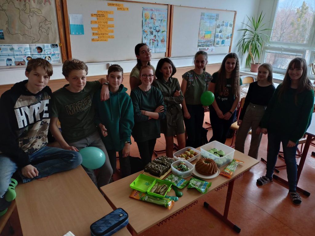 Jako každý rok i letos se 17. března slavil v Irsku den svatého Patrika. Jelikož je část Irska také součástí Spojeného Království, oslavili jsme tento svátek i v naší hodině angličtiny s paní učitelkou Tomkovou, i když o den později – 18. března, v pátek. Typickou barvou pro den sv. Patrika je zelená. Většina z nás tak donesla zelené jídlo nebo balónky. Mnoho žáků se také obléklo do zelených barev. V hodině jsme si mimo jiné poslechli několik ukázek typické irské hudby a podívali se, jak se tančí tzv. jig. Jedna vyučovací hodina byla sice pro oslavu tohoto dne krátká, ale i tak jsme si ji všichni velmi užili.