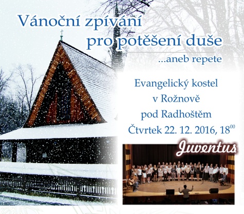 22. 12. 2016 – Adventní zpívání pro malé setkání (rodiče, prarodiče, přátelé, studenti) v Evangelickém kostele (18:00)